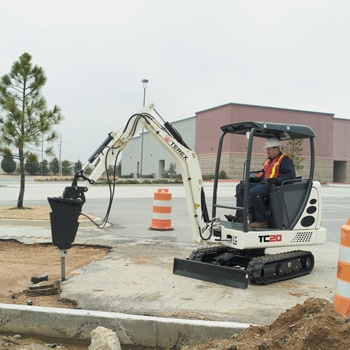 Terex TXH Series hydraulic hammers are built for complete compatibility with Terex compact excavators. Every hammer in the TXH Series is vibra-silenced, via the polymer suspension pad, to reduce total operator and carrier machine vibration exposure. The TXH hammers’ high-blow energy is constant throughout the engine rev range and has a low susceptibility to back pressure. The Terex range of hammers offer 251 ft-lbs (350 J) to 1,033 ft-lbs (1,400 J) of maximum energy per blow and 450 to 950 to 550 to 1,100 blows per minute (bpm).