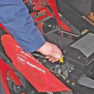 Check fluid levels: Make sure that engine oil, gasoline (or diesel), hydraulic fluid and battery water are all at the correct levels. Top off the fluids, if necessary, but be careful not to overfill.