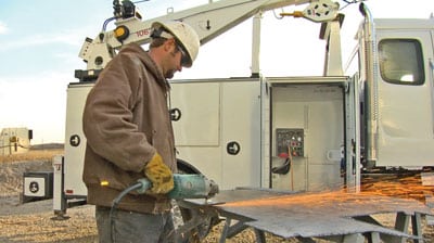 “Having the auxiliary power to run the larger plasma cutters is important,” says Cramer. “12,000 to 15,000 watts is ideal. With my Trailblazer 302 AirPak, I can run a [rated 60-amp] plasma cutter at 50 out of 60 amps. You can run it wide open at 60 amps, but if you’re running it and it’s warm out, and you get heat build up, I can run about 50 amps, which gives you 1/2-in., maybe 5/8-in. cutting capacity.”