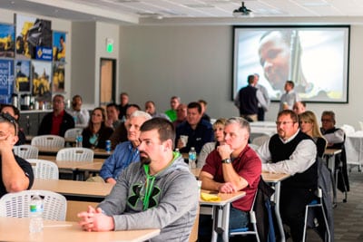 Event attendees were welcomed by John Hood, director of heavy equipment sales for BOMAG Americas, and they were given an overview of BOMAG and the Fayat Group, BOMAG’s parent company. Then the guests were divided into intimate groups, where they were given a full tour of the manufacturing space, semi-automated spare parts warehouse and distribution center, offices, training bay for equipment, and demonstration area. Commenting on the tour, Soley added, “The facility is bright, open and efficient. It is designed such that there are no barriers to communication. We brought customers with us and will definitely be bringing more in the future.