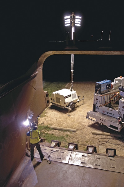 Bulb choice will be a big decision in brightness and pocketbook. Metal-halide bulbs are still the most popular style, but the introduction of LED lamps, which are renowned for their durability and efficiency, are becoming more common. For example, Atlas Copco incorporated LED flood lights into its HiLight V5+, and Jim Siffring, product manager of generators, says they can last longer than 10,000 hours while being able to withstand a range of conditions, from vibrations during transport to harsh work environments.