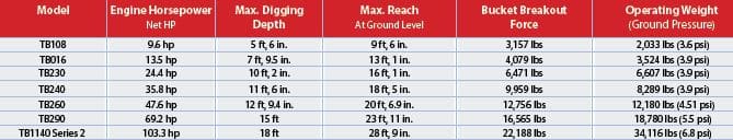 Takeuchi Excavators — 2015 Spec Guide