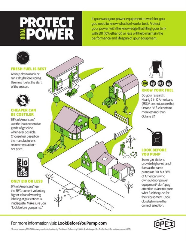 “Manufacturers are doing their part,” notes Kiser, “explaining to consumers that warranties can be invalidated by mis-fueling and spelling out clear fueling directions in consumer instructions.” For six years OPEI has conducted a national consumer protection and education program urging consumers to “protect your power” by fueling safely with E10 or less. “But we can only do so much when we’re talking about having to educate the entire country. The government, which is allowing these fuel changes, should be doing more education.”