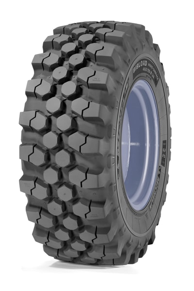 The Michelin Bibload Hard Surface tire offers a specialized option for compact loaders, backhoes and telescopic equipment on asphalt and other solid surface applications. Featuring radial construction, steel belts and reinforced casing for puncture resistance, it is designed to carry out a large number of lateral, longitudinal and transversal movements on hard, wet and even snow-covered surfaces. To meet these performance challenges, Michelin developed robust sidewalls and an innovative, multi-directional tread design with a diamond-shaped tread pattern made up of beveled blocks. The diamond pattern provides more contact with the road surface than a bar based tread pattern for optimal traction and a smoother ride. Available in 10 sizes, the Michelin Bibload Hard Surface offers greater longevity thanks to its deep tread pattern.